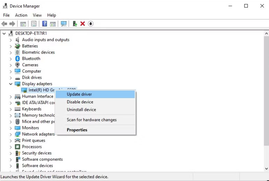 Lỗi Memory Management cũng có thể liên quan đến driver card đồ họa. Để kiểm tra và cập nhật driver GPU: