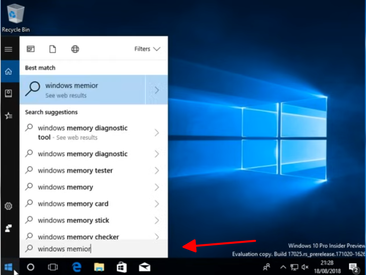 - Tìm kiếm Windows Memory Diagnostic trong menu Start.