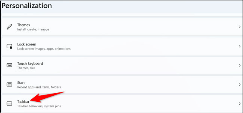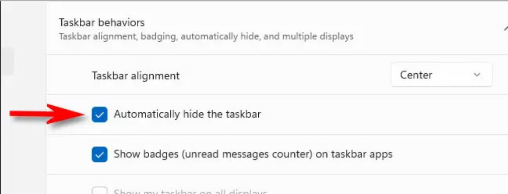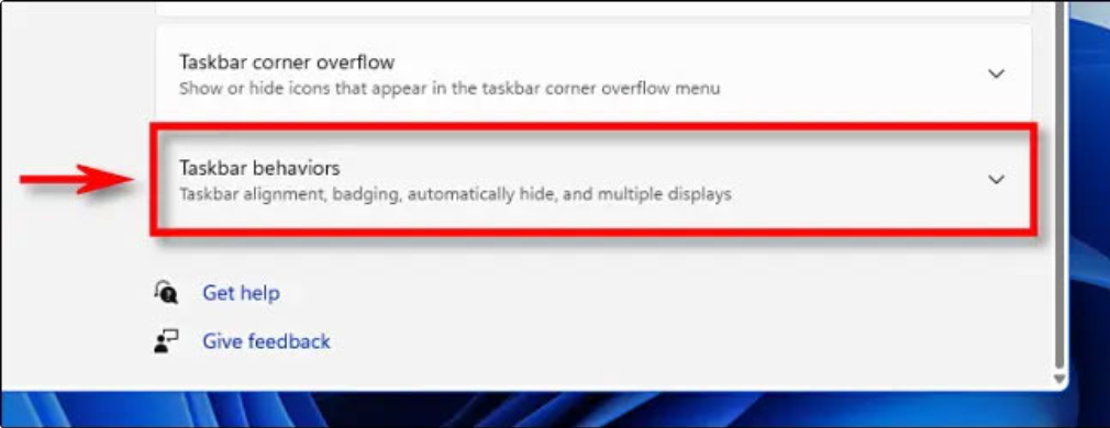 - Cuộn xuống và tìm đến Taskbar Behaviors.