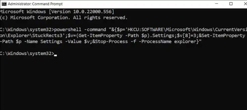 - Để ẩn thanh Taskbar, nhập lệnh sau vào cửa sổ Command Prompt và nhấn Enter: