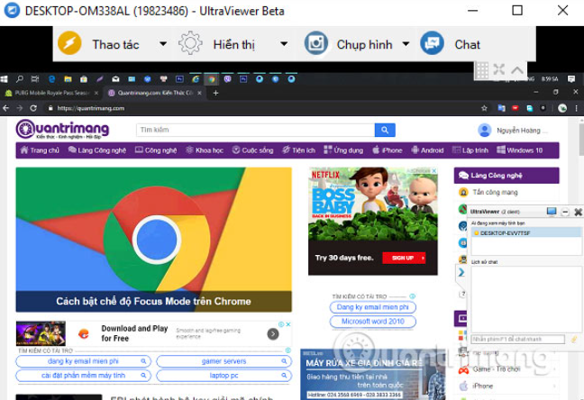 Ngay khi kết nối thành công, màn hình máy tính của đối tác sẽ hiển thị trong cửa sổ UltraViewer của bạn, cho phép bạn thao tác từ xa như đang ngồi trực tiếp trước máy họ.
