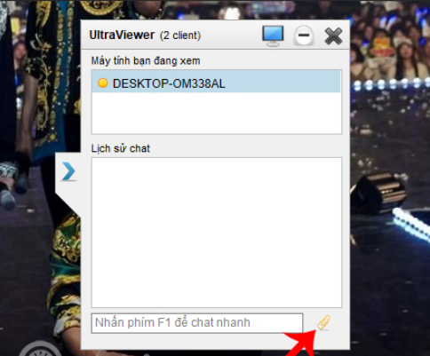 Quan sát bên phải giao diện UltraViewer, bạn sẽ thấy biểu tượng mũi tên hoặc thanh trượt mở khung Chat.