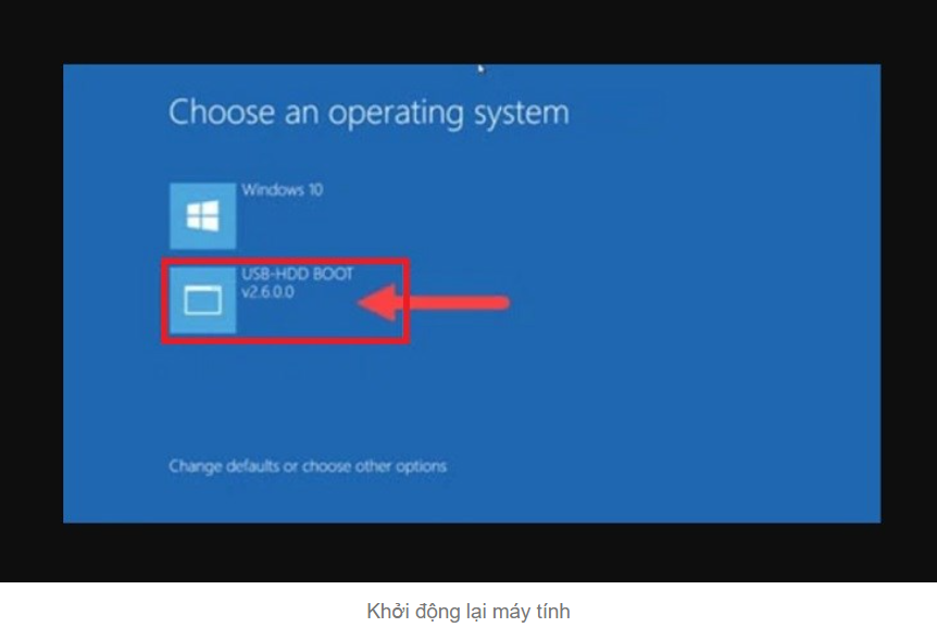 - Khởi động từ ổ cứng: Khởi động lại máy tính và chọn "USB-HDD BOOT" để bắt đầu ghost.