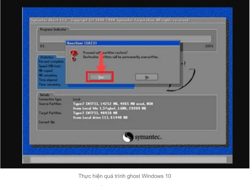- Hoàn tất quá trình ghost: Chờ quá trình ghost hoàn tất và khởi động lại máy tính.