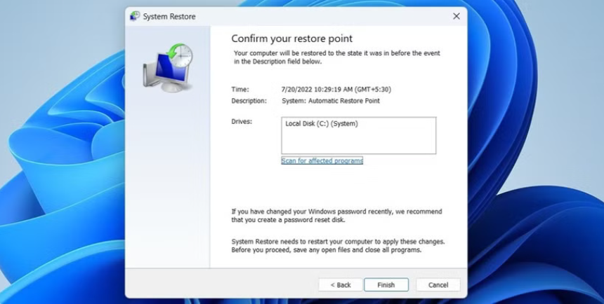 - Chọn điểm khôi phục trước khi lỗi xảy ra và làm theo hướng dẫn.