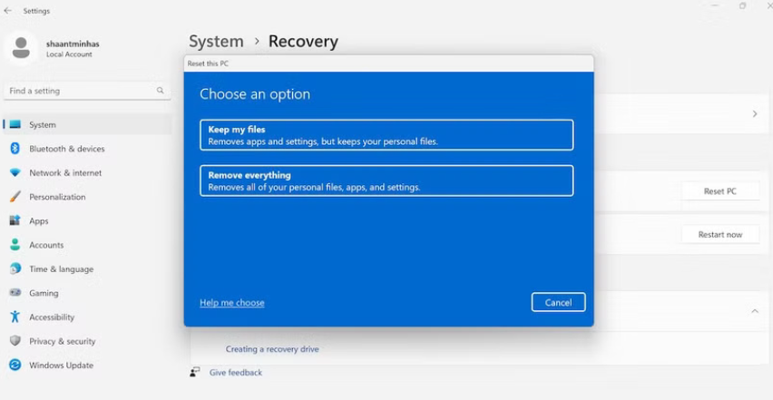 Nếu không có cách nào hiệu quả, bạn có thể thử Reset PC để khôi phục tất cả cài đặt về mặc định. Điều này sẽ không làm mất dữ liệu cá nhân của bạn.