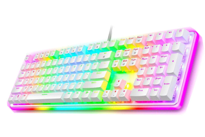 Keycap là một trong những điểm mạnh của Royal Kludge RK918 RGB ở phân khúc giá rẻ, font chữ in trên mặt khá thẩm mỹ, Keycap xuyên led bắt mắt .Không những thế Stabilizer keyboard được thiết kế cực kỳ thông minh với lõi dưới blackpate kiến việc tháo keycap dễ dàng mà không bị bung thanh thép cân bằng ( thứ mà rất nhiều a e có khi phải mất cả tiếng đồng hồ để lắp lại khi lắp mới or vệ sinh keycap ^^ ).Ngoài ra KEYCAP 2 LỚP TIÊU CHUẨN CỰC BỀN BỈ, dãy phím media được thay thế bởi những ô đèn báo trên các phím layout 104 tiêu chuẩn. Với các nút tăng giảm âm lượng, mở nhanh nút máy tính rất phù hợp với các anh em dùng văn phòng.