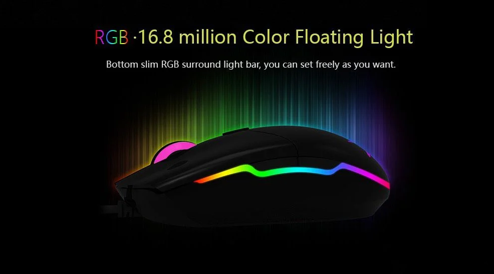 Dải đèn led RGB tuyệt đẹp 16,8 triệu màu quanh viền chuột. Dải ánh sáng vòm RGB mỏng phía dưới có thể thiết lập theo ý muốn