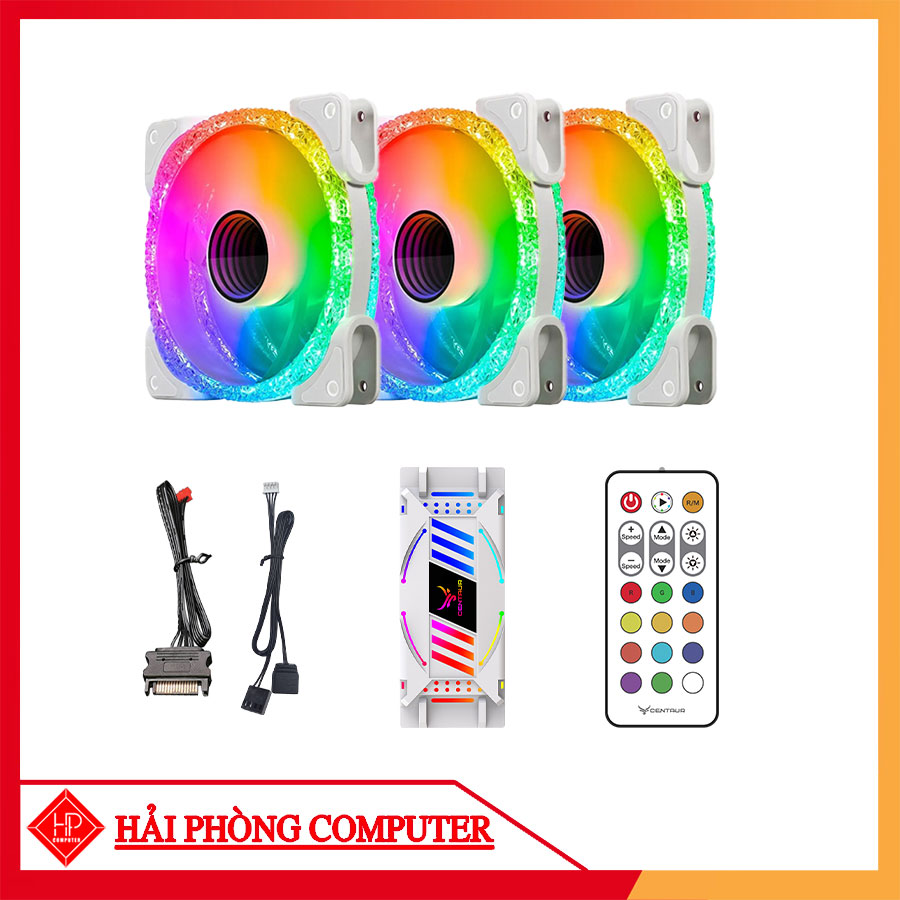 COMBO 3 FAN LED RGB CENTAUR CT 03 2 MÀU TRẮNG/ ĐEN + HUB KHIỂN