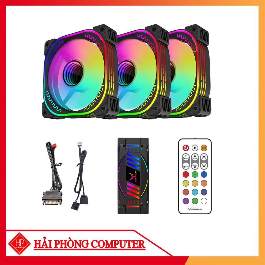 COMBO 3 FAN LED RGB CENTAUR CT02 2 MÀU TRẮNG/ ĐEN + HUB KHIỂN