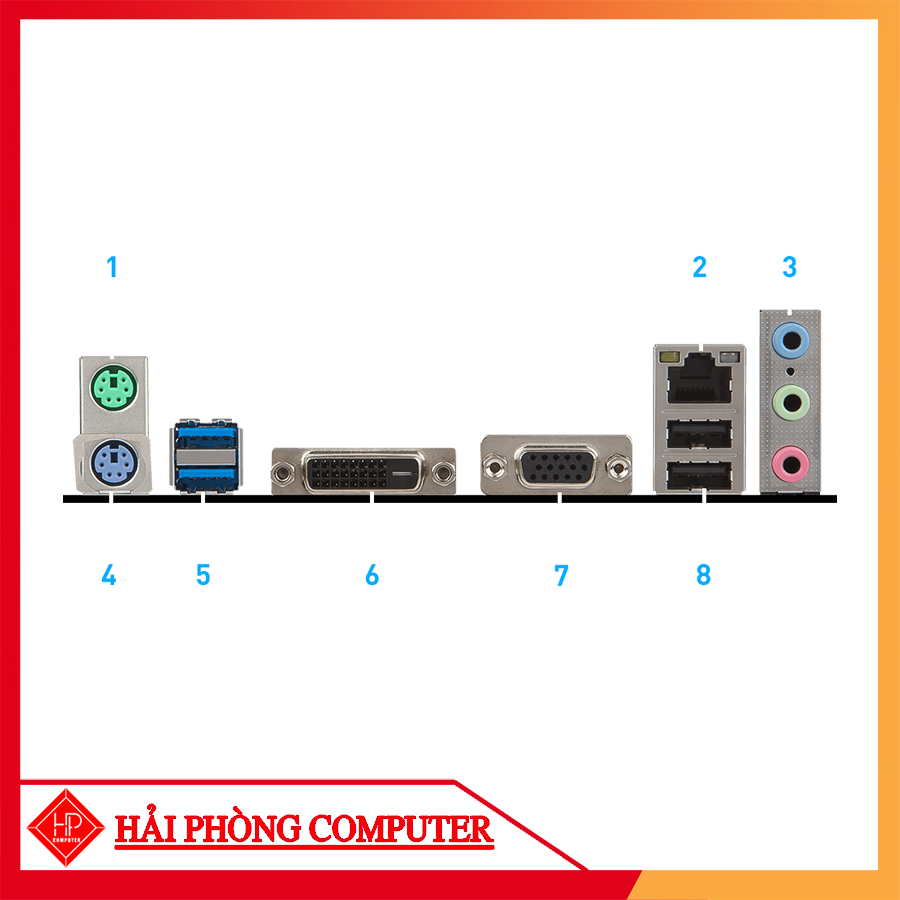 | Cổng giao tiếp ngoài | 2 x PS/2, 1 x D-Sub, 1 x DVI, 2 x USB 2.0, 2 x USB 3.1 | - |