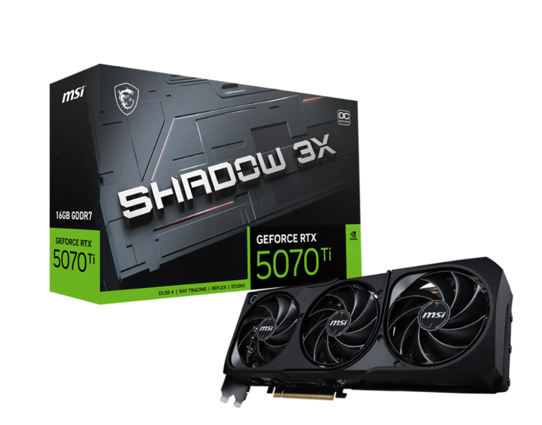 MSI RTX 5070 Ti 16GB SHADOW 3X OC là một trong những mẫu card đồ họa nổi bật thuộc thế hệ GPU mới của NVIDIA, được MSI tinh chỉnh với thiết kế SHADOW 3X ba quạt mạnh mẽ, tối ưu khả năng tản nhiệt. Với bộ nhớ GDDR7 16GB, băng thông 256-bit và xung nhịp được nâng cao, đây là sự lựa chọn lý tưởng cho cả game thủ chuyên nghiệp lẫn người làm đồ họa – sáng tạo nội dung.
