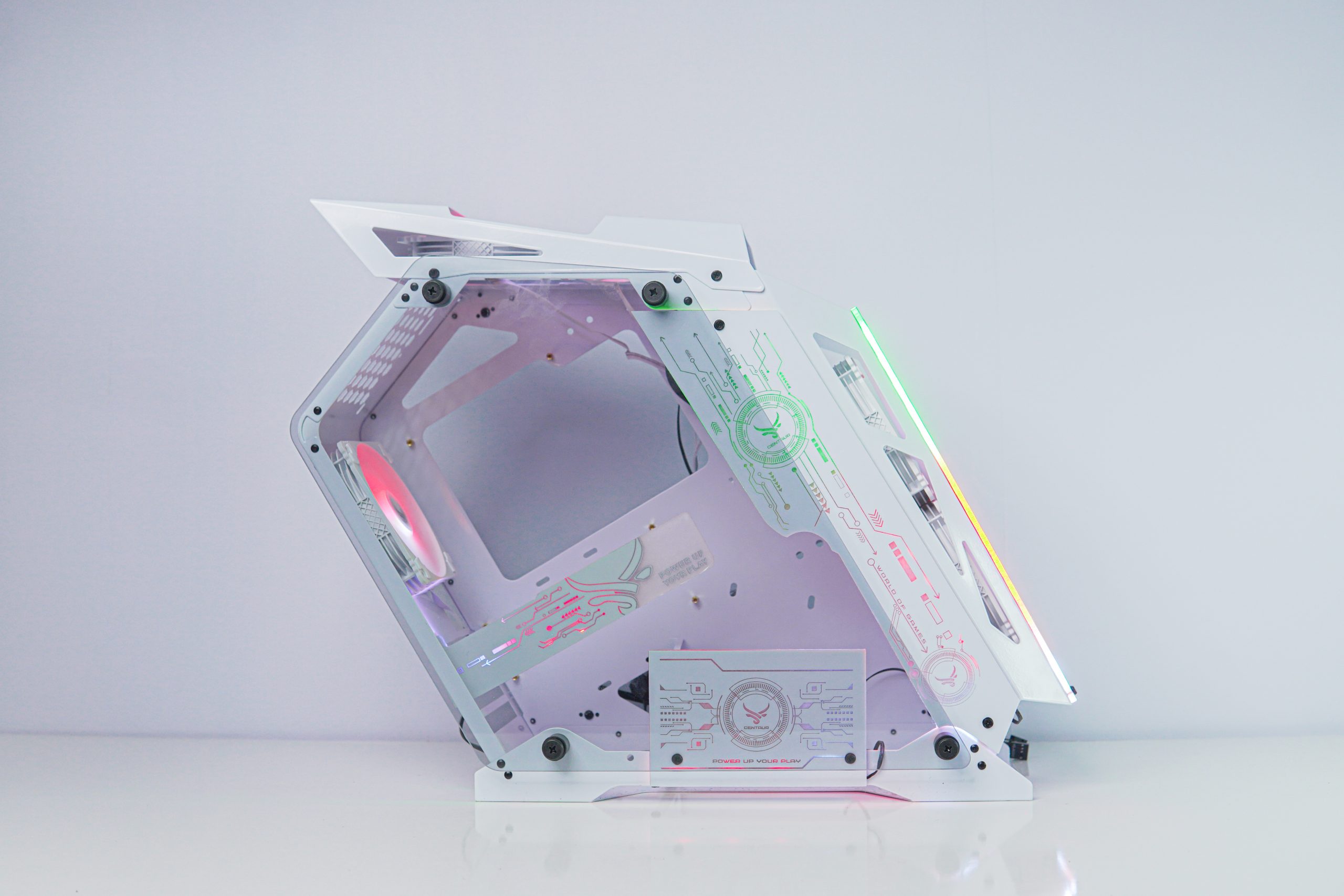 CASE CENTAUR SAG GAMING CT201 là mẫu case PC dạng mở sử dụng công nghệ CNC và NCT chính xác tiên tiến. Bằng việc sử dụng thép cao cấp dày 1,2mm và sơn phủ trắng, Centaur mang lại vẻ đẹp khó cưỡng. Sự kết hợp của kính cường lực ở mặt trước, 2 bên hông giúp biến bộ PC của bạn thành tác phẩm nghệ thuật