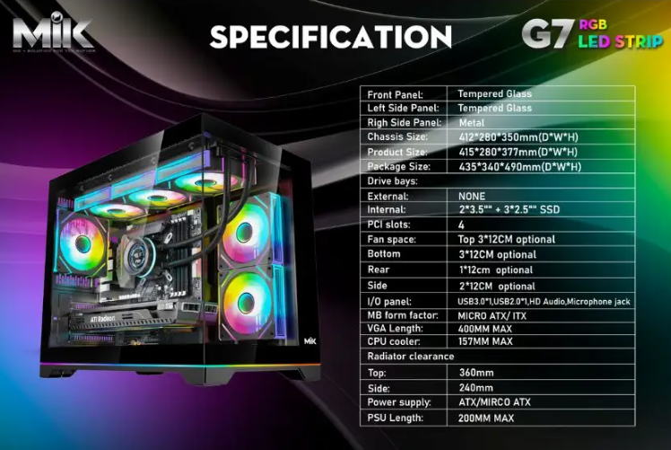Mặc dù thuộc dòng Mini Tower, MIK G7 LED Strip mang đến khả năng hỗ trợ linh kiện tương đương nhiều case Mid Tower: